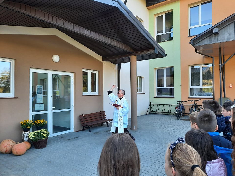 Uroczystość rozpoczęła się od mszy świętej celebrowanej przez księdza Piotra Łyska. W swojej homilii skupił on uwagę na cechach prawdziwego przyjaciela. Podkreślił, że właśnie w szkole zawiązują się przyjaźnie, które niekiedy trwają przez długie lata. Przesłanie celebransa dopełniły pieśni w wykonaniu miejscowej scholi.